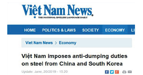 越南工業貿易部6月19日表示,自下周起,越南將對進口自中國的部分鋼鐵制品征收臨時反傾銷稅。上述部門公告稱,對進口自中國的部分彩涂鋼制品征收的反傾銷稅稅率為3.45%-34.27%,自周二(25日)生效。與此同時,越南還將對三家韓國企業的類似產品征...