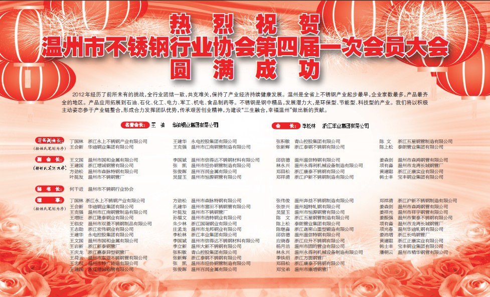 熱烈祝賀溫州市不銹鋼行業協會第四屆一次會員大會圓滿成功